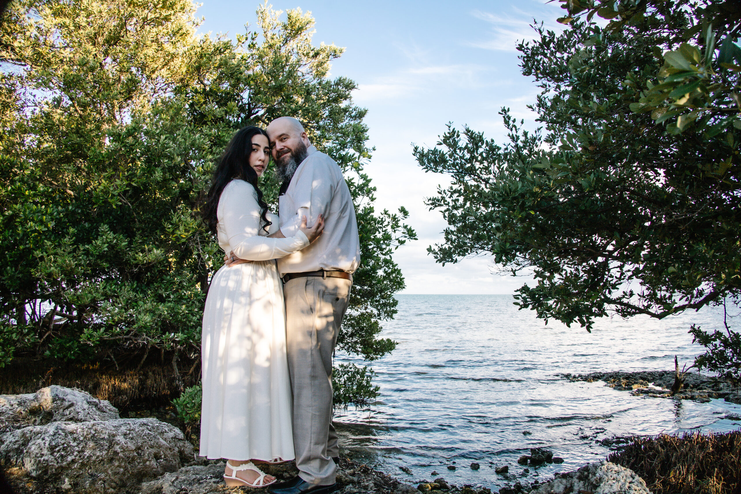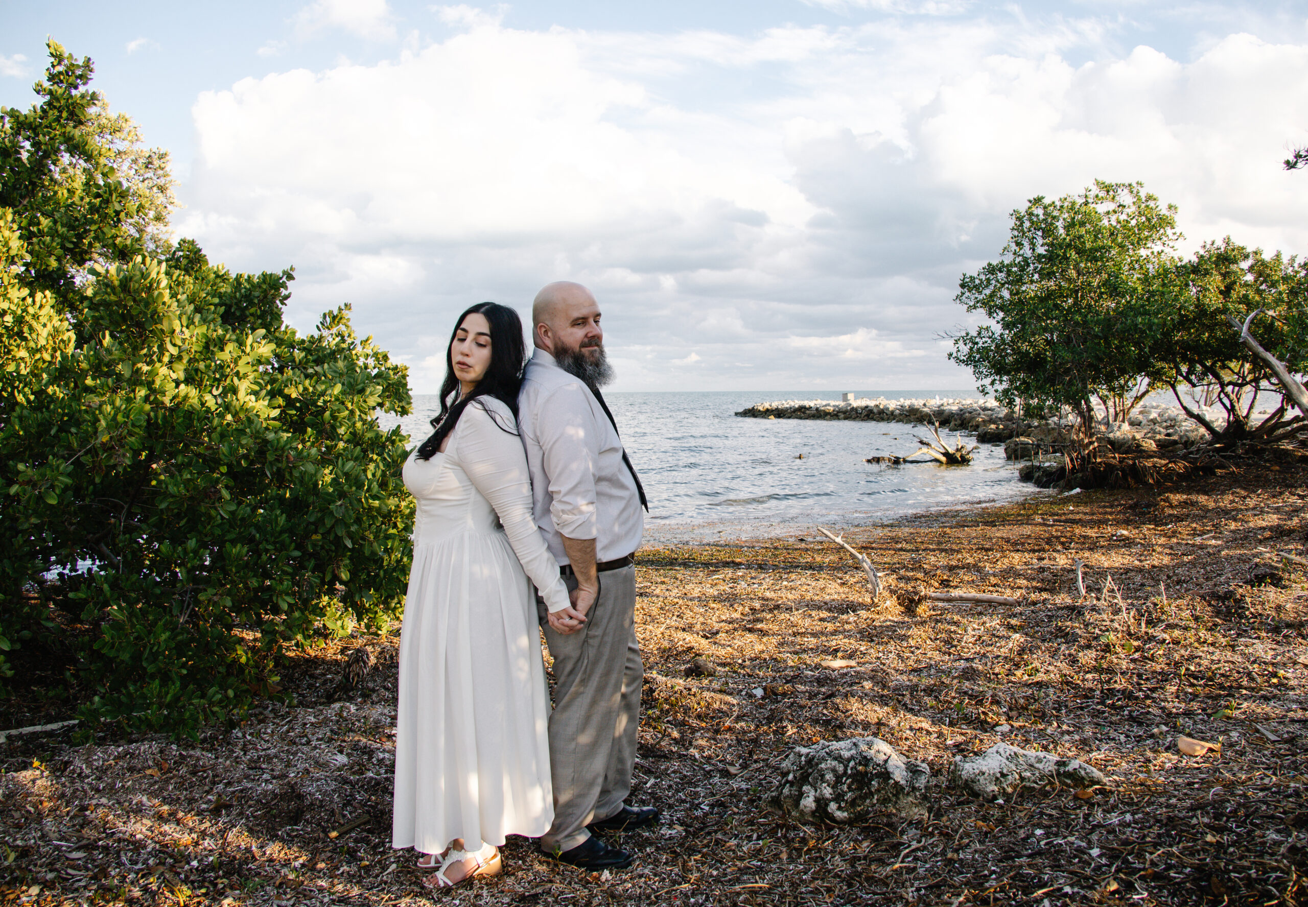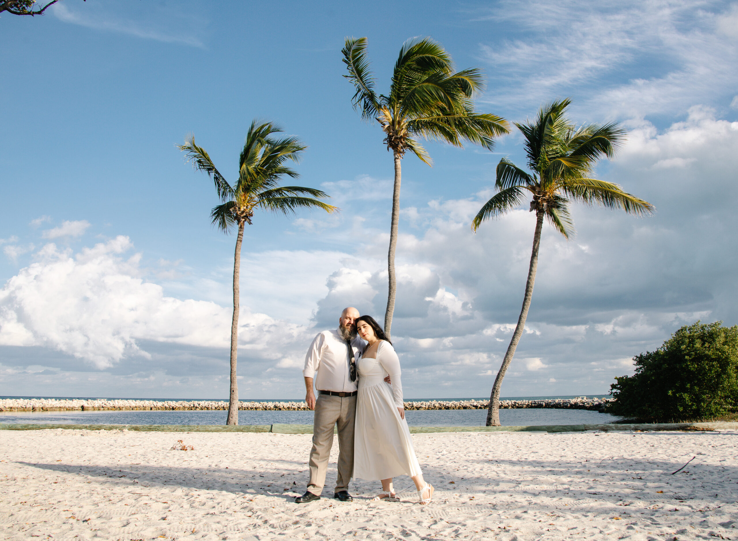 Your elopement ceremony will take place at Tavernier Public Beach — a charming, natural setting with plenty of beautiful photo opportunities. From soft beach sand and two large concrete jetties overlooking the water to palm trees, mangroves, coral rocks, and shaded areas beneath the trees, this spot offers endless backdrops for stunning photos.