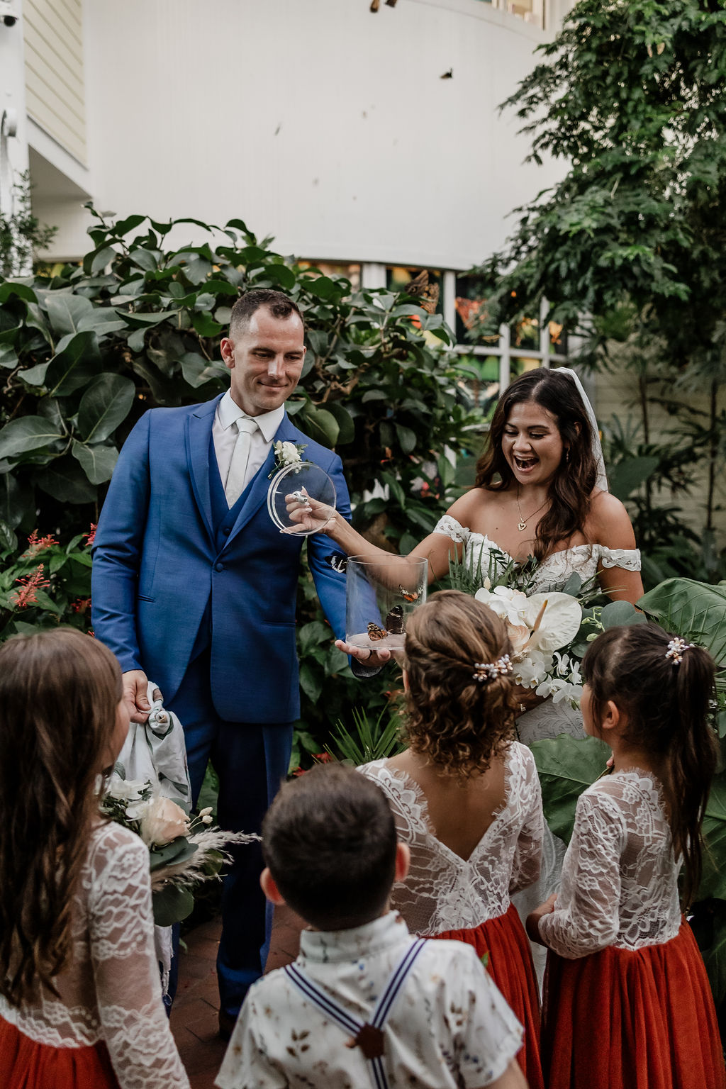 Our talented photographer Jesica captured every beautiful detail — the joy, the peaceful surroundings, the laughter of their children, and the romantic atmosphere the Butterfly Garden naturally creates.