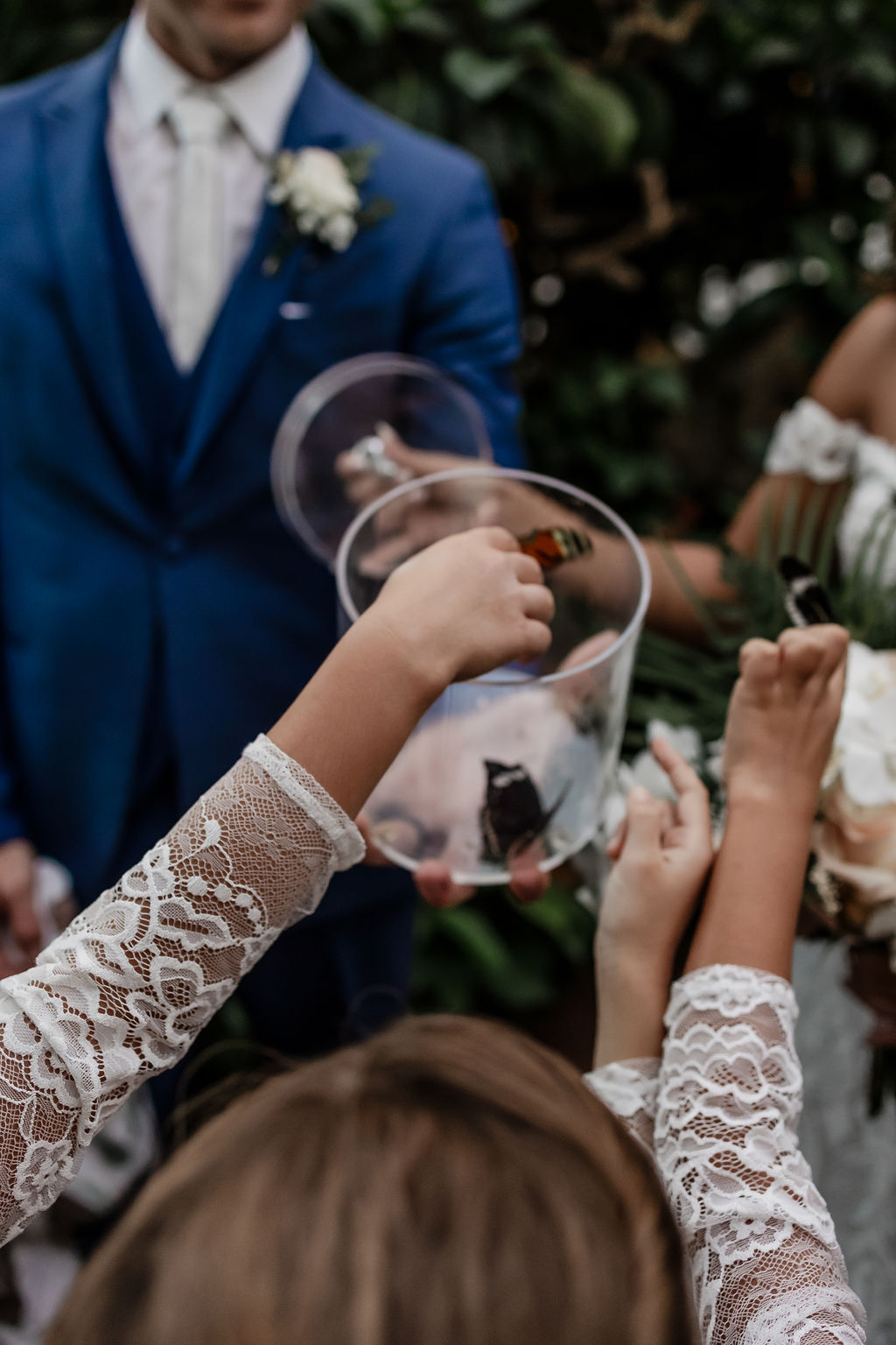 Michael, our wonderful officiant, performed a heartfelt ceremony for Jasmin and Harley and included a sand ceremony, where they incorporated their small children for a touching family moment. After the ceremony, they experienced one of the most magical parts of this location — releasing butterflies, a symbolic and emotional moment that represents transformation, new beginnings, and love taking flight.